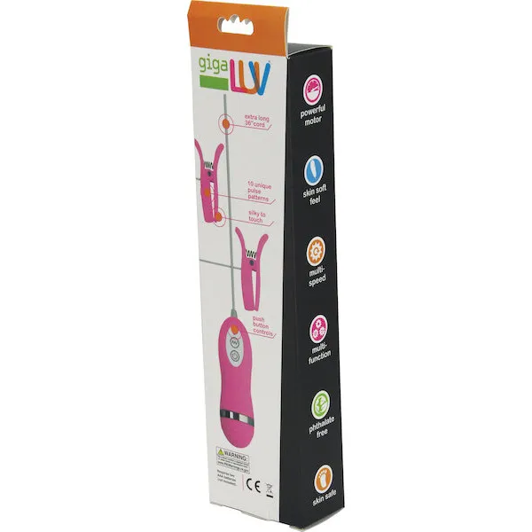 GigaLuv Vibro Clamps are 10 mode vibrating clamps. Clamps are made from body safe and phthalate free ABS with a silky to touch PU coat. and feature 10 unique pulse patterns. Push button controls for easy use. Extra long 36" cord....