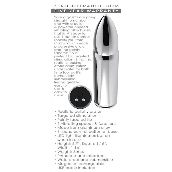 Your orgasms are going straight to number one with a bullet! A powerful 7-speed vibrating alloy bullet, that is. An easy to use 1-button control rockets you from mild wild with each progressive click, and the pointy tapered tip is...
